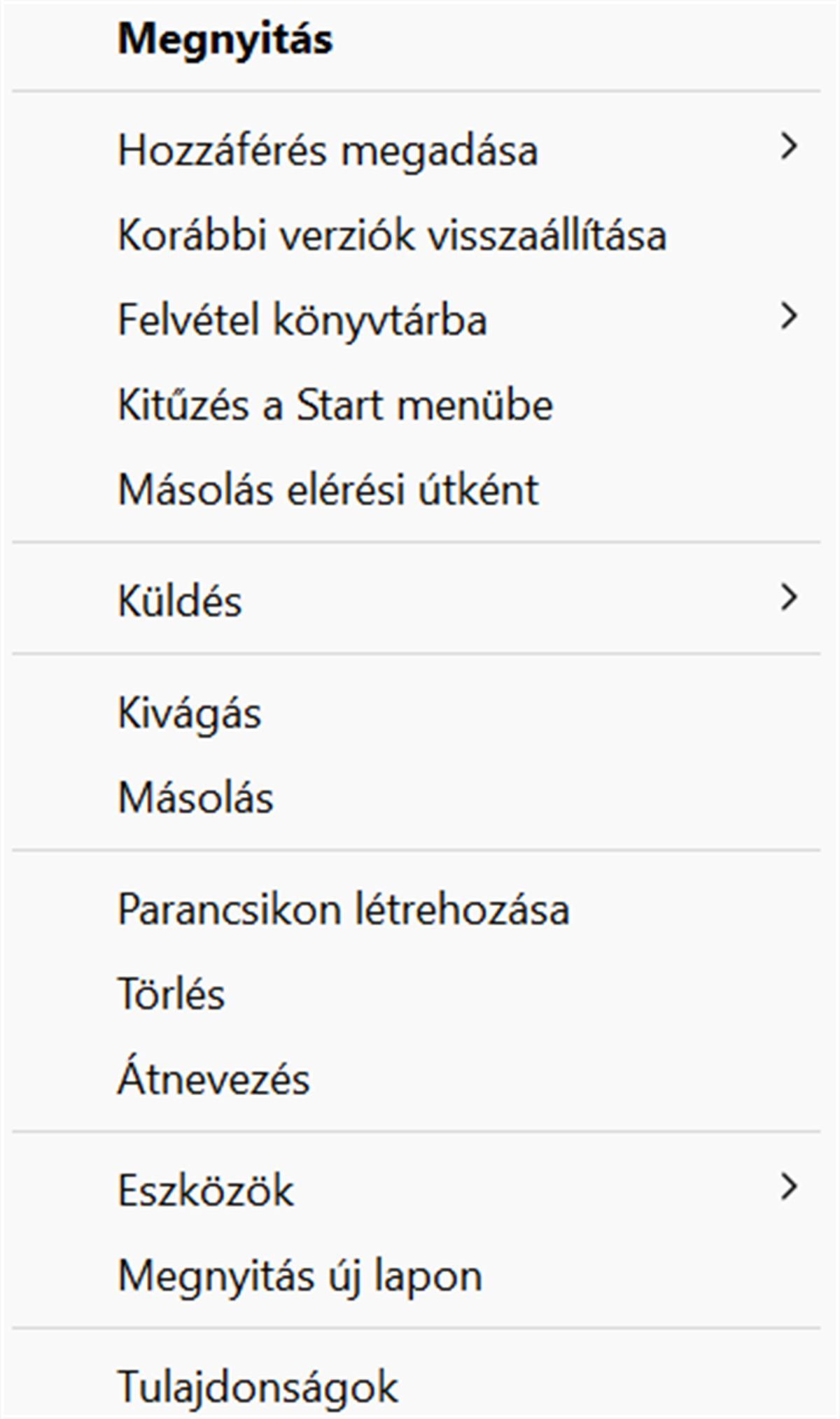 A fájl műveleteknél a szokásos Ctrl+C, Ctrl+V, Ctrl+X működik és a jobb kattintásra megjelenő helyi menü is.
