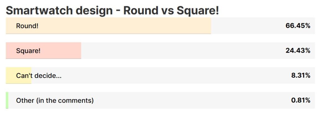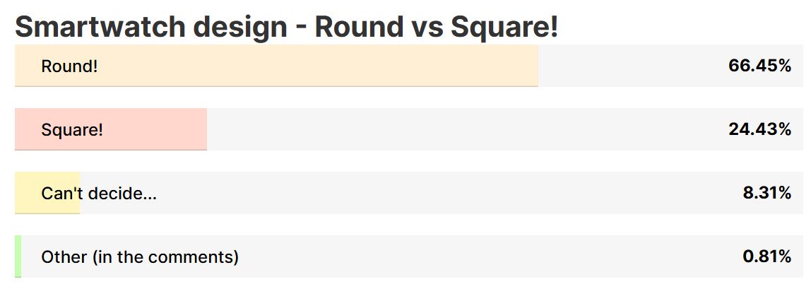 Túl sok hiteles felmérés nincs, de például a Phonearena-n van egy szavazás, amin azért jól látszik a trend: csak a vásárlók negyede választ kifejezetten négyszög okosórát.