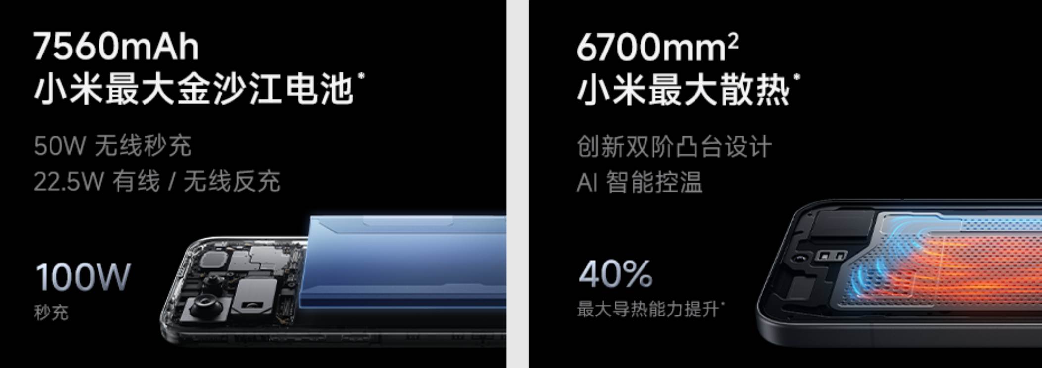 A hűtésre a Xiaomi eddigi legnagyobb, 6700mm² felületű 3D Ice Sealed hőelvezető rendszere vigyáz. Ez egy innovatív kétlépcsős kialakítást alkalmaz, amely hatékonyabban vezeti el a hőt a chip környékéről, ezzel csökkenti az SoC maghőmérsékletét. A hővezető grafit és a hővezető gél együtt dolgozik, így magas hűtési teljesítmény és stabil csúcsteljesítmény érhető el hosszabb, intenzív játék közben is, anélkül hogy kellemetlenül felforrósodna.