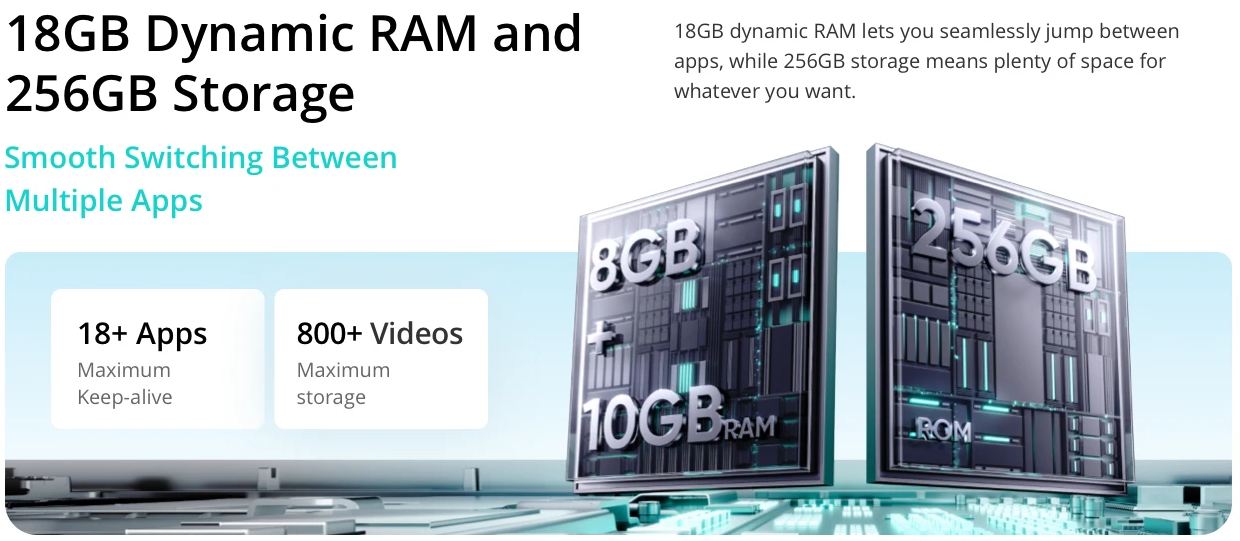 Memóriából három változat van: 128GB tárhely 8GB RAM-mal, 256GB 8GB RAM-mal, illetve 256GB 12GB RAM-mal. Bővíthetőség nincs, memóriakártyát nem támogat.