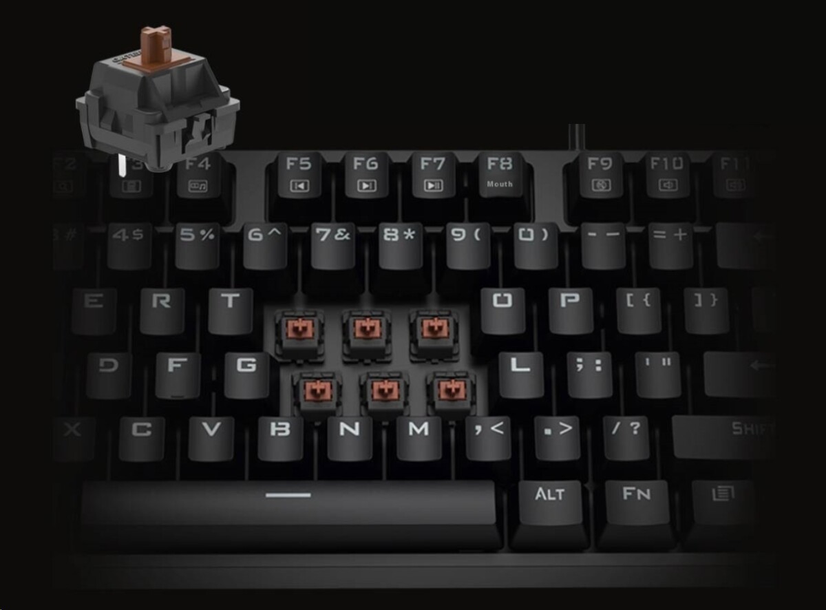 Piros és barna kapcsolókkal érhető el és billentyűsapkák levehetők.