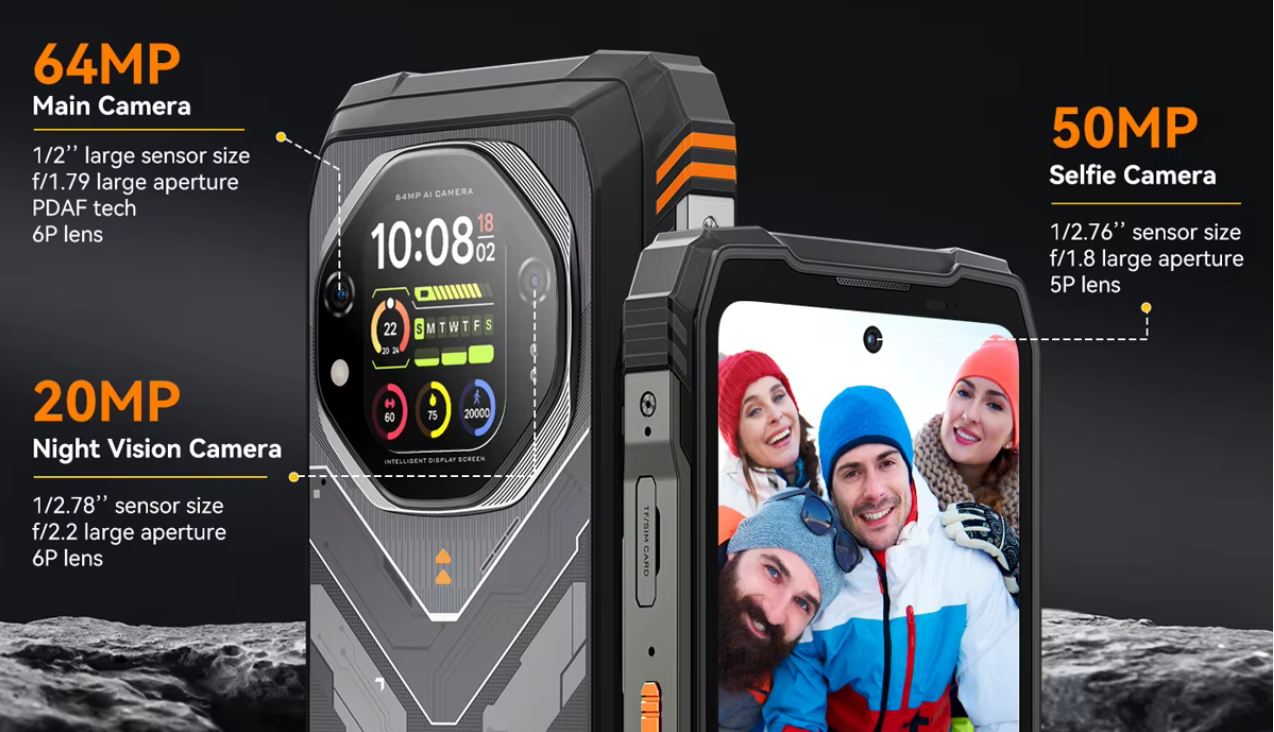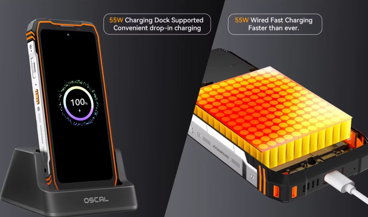 Az OSCAL TANK 1 egy strapabíró és vízálló (IP69K) telefon nagy, 6.78″ méretű kijelzővel, 1080 x 2460 pixel felbontással, 120Hz képfrissítéssel és a Gorilla Glass 5 által védve.