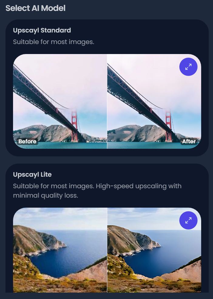 Általánosan normál képekhez, fotókhoz az Upscayl Standard megfelelő, mert jó minőséget ad, közepes erőforrás igénnyel.