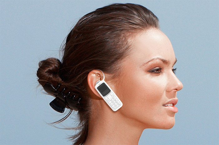 De nem csak telefonként, hanem bluetooth headset-ként is használható, de kissé bizarr látvány a fülben egy komplett mobiltelefon: