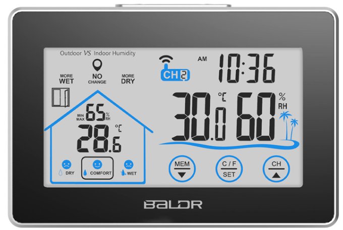 Egy kellemes megjelenésű időjárás állomásról van szó, amely önmagában is méri a környezete hőmérsékletét, páratatalmát, valamit mutatja az időt is.
