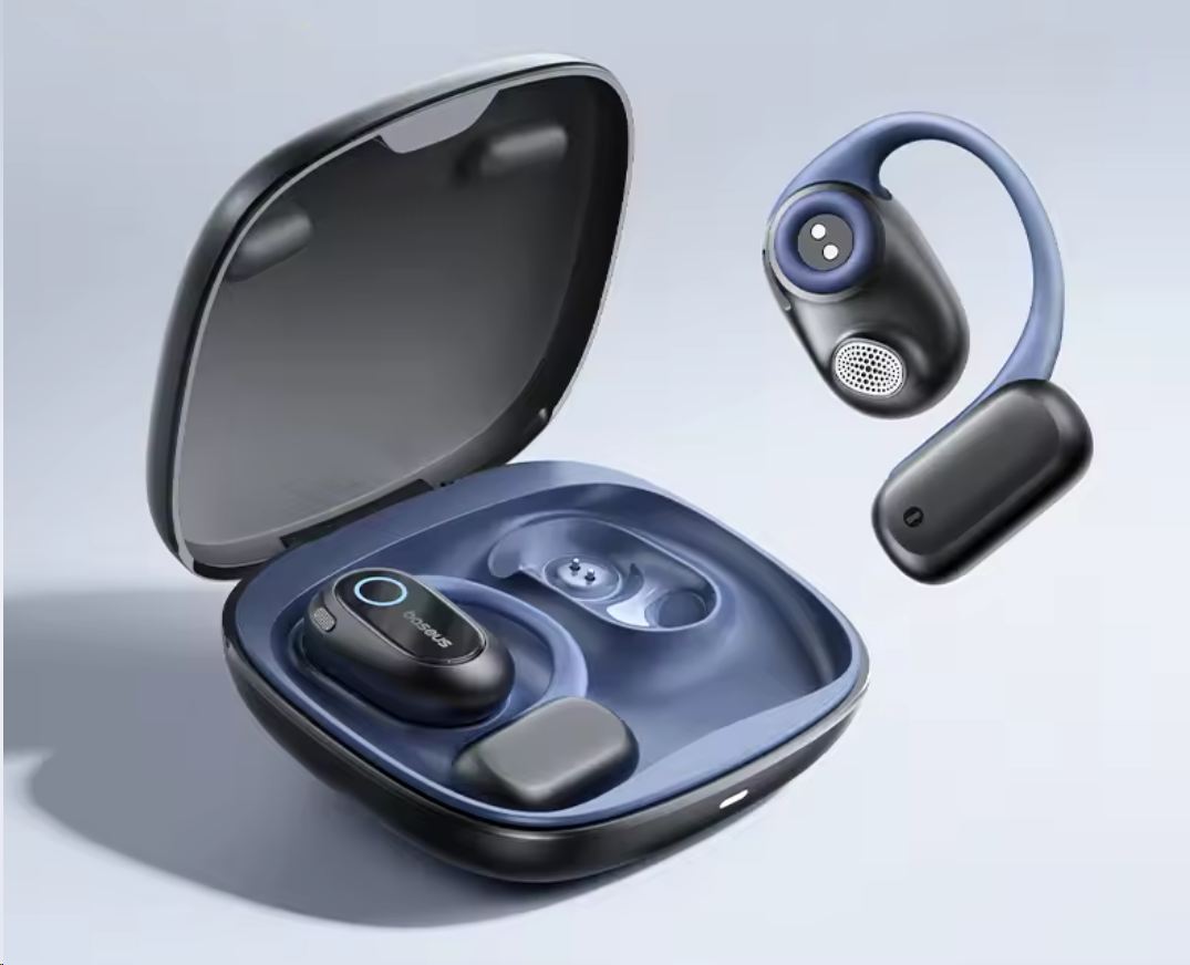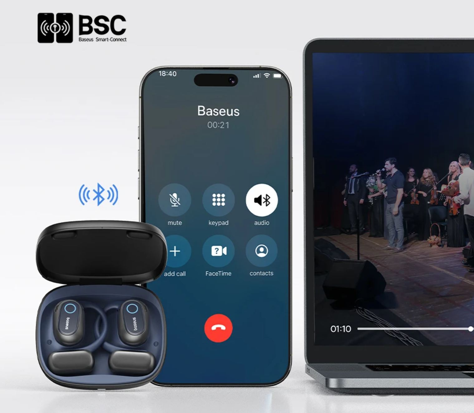 A Baseus Bowie MF1 egy nyitott kialakítású, úgynevezett „open-ear” fülhallgató, ami nem a hallójáratba ül be, hanem a fülkagyló külső részére simul. A szilikon fülkampó rugalmas, enyhén memóriahuzalos, így stabilan a helyén marad sportolás vagy mozgás közben is, mégsem nyomja a fület.