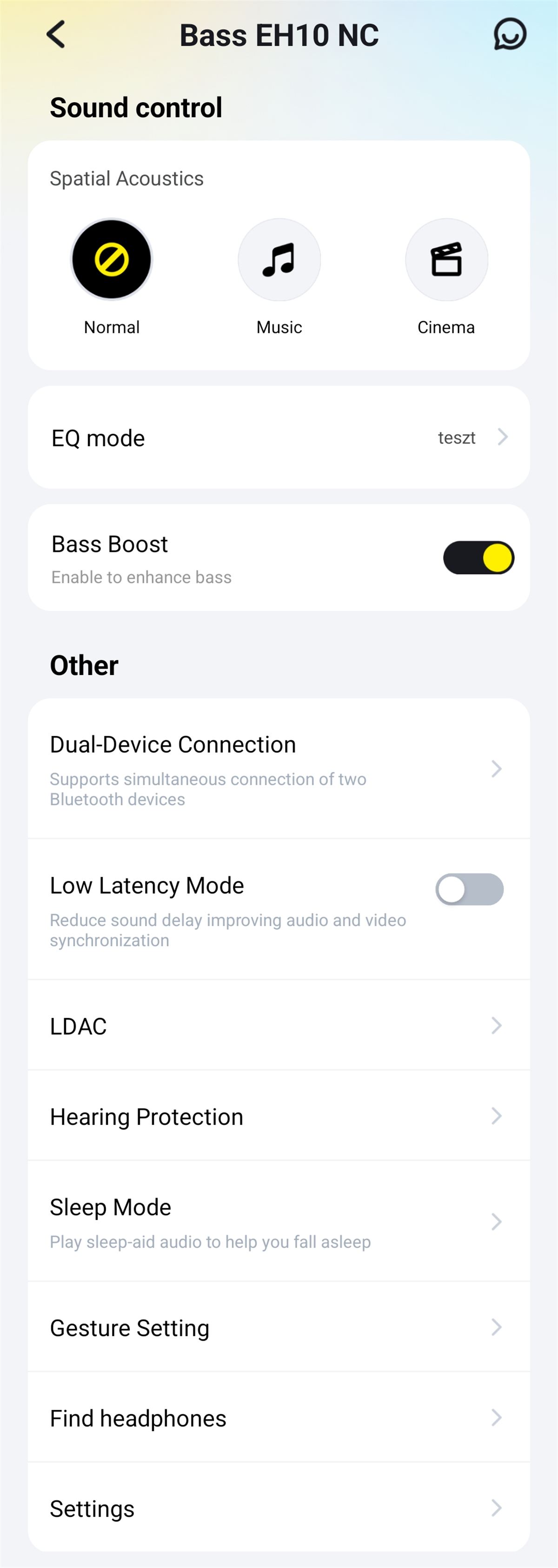 Ez viszont a Baseus EH10 NC esetén nincs jelen, egészen természetes az alap hangzása, nincs fura érzete, amivel nálam már jól indított.