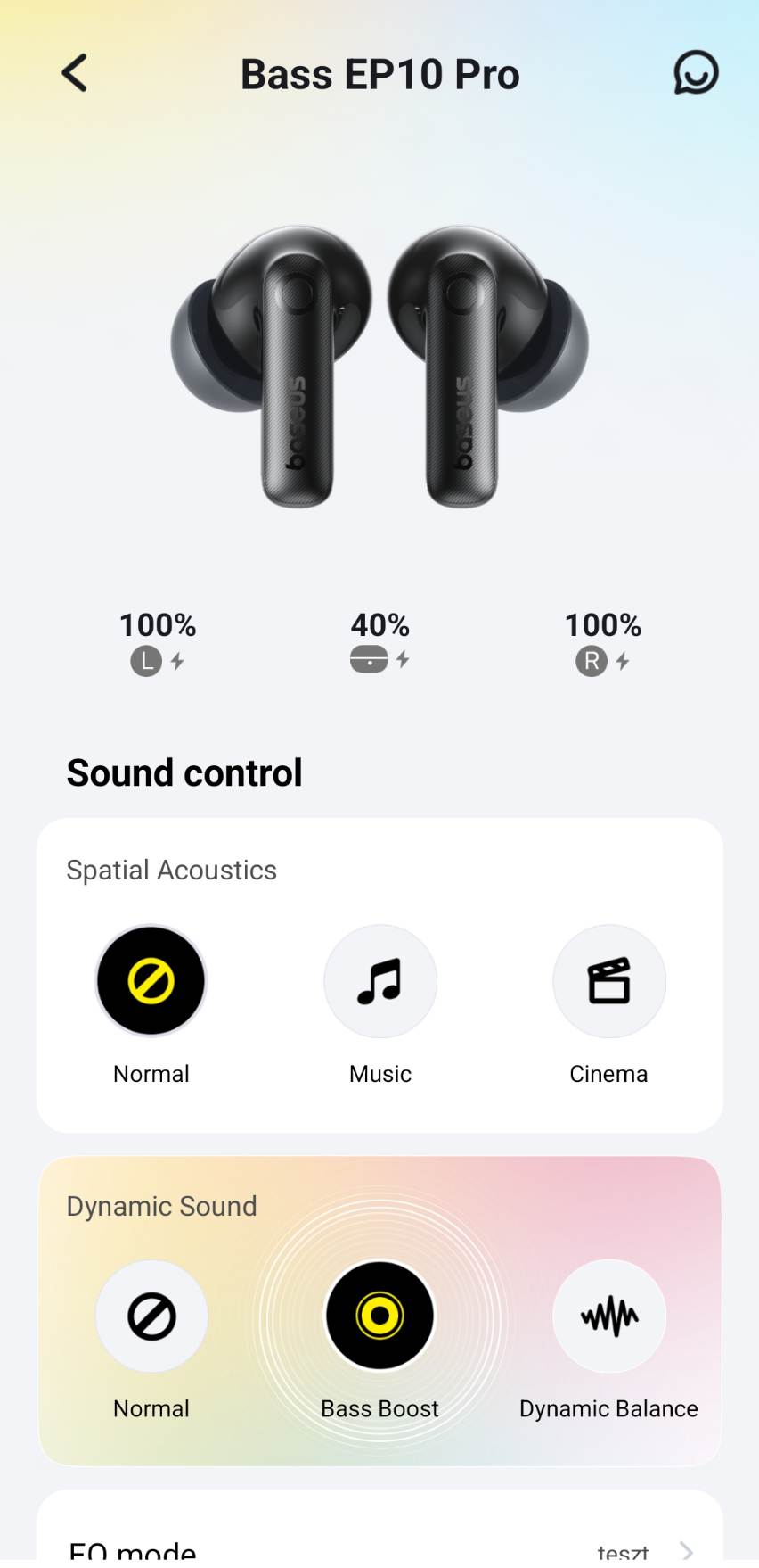 A Dynamic Sound kombinálható tetszőleges equalizer beállítással, akár a Deep Bass is beállítható Bass Boost móddal, ami tovább erősíti a basszust (szerintem már indokolatlan mértékűre, de nem döntöm el senki helyett, hogy mire van igénye 😀 ).