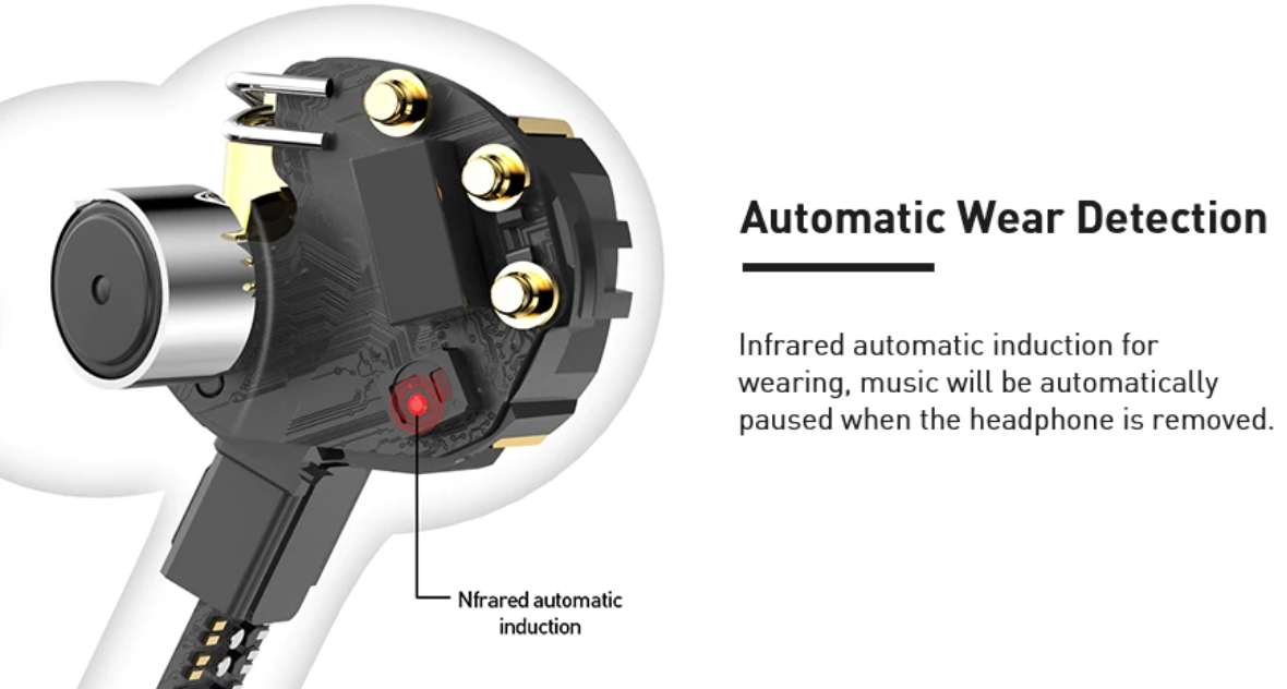 Képes érzékelni, ha a fülből kivesszük és olyankor automatikus megállítja a lejátszást.