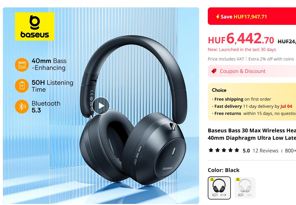 Megérkezett a legújabb Baseus fejhallgató és ez egy különleges példány, mert a gyártó a basszus kedvelőknek szánja, amit már a nevével is jelez: Baseus Bass 30 Max.