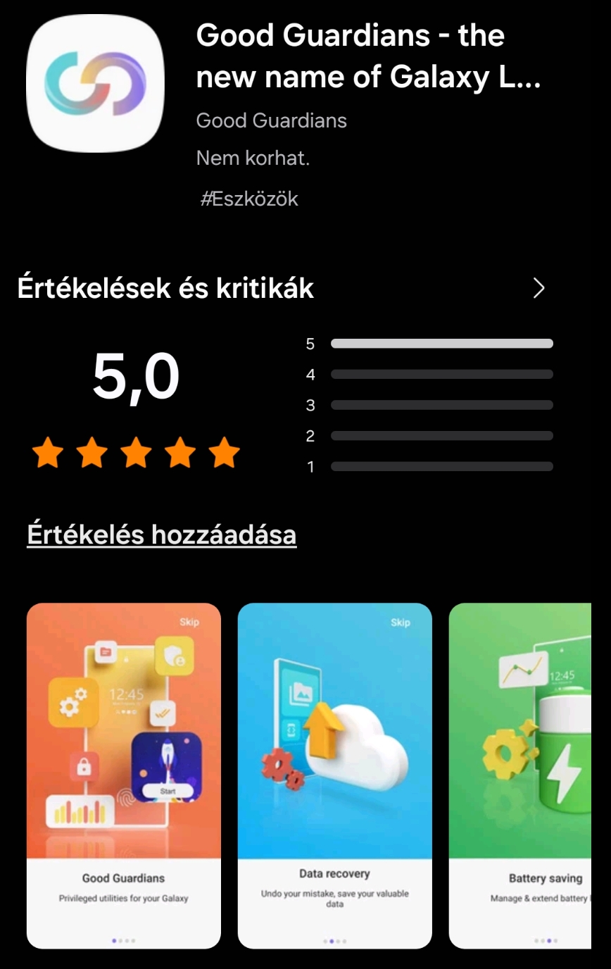 A Samsung Good Guardians (Galaxy Lab) alkalmazást a Samsung Galaxy Store-ból lehet letölteni és telepíteni.