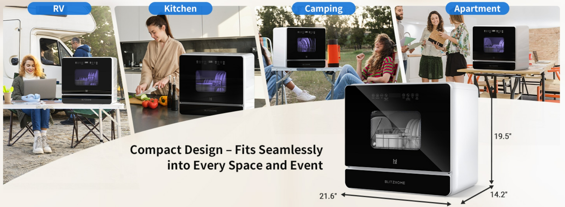 BLITZHOME BH-6-CDW, a bárhol használható asztali mosogatógép – beépített víztartállyal