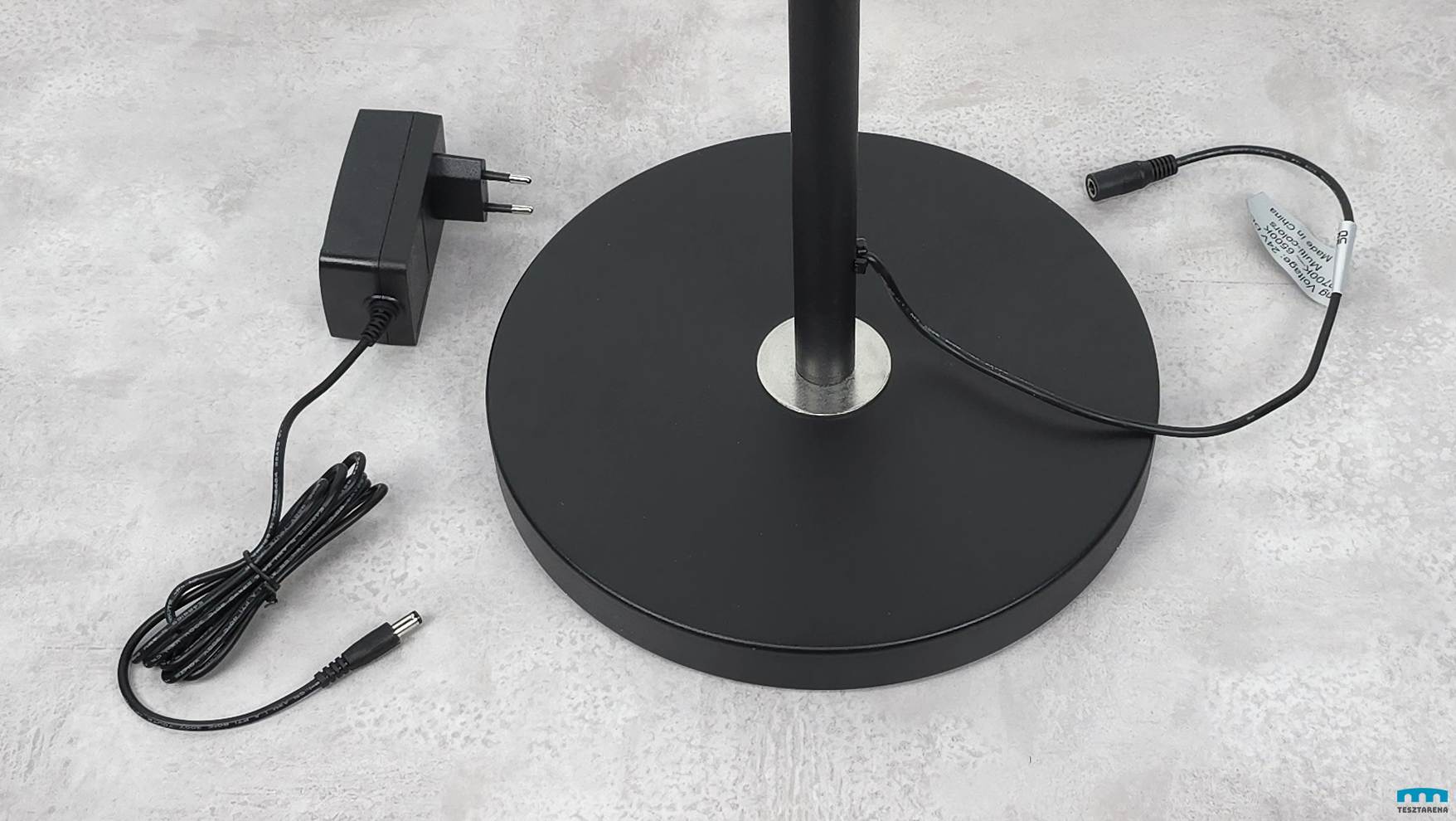 A dizájn modern, nincs túlbonyolítva, egyszerű fekete talp és oszlop, mindkettő erős fémből, aminek köszönhetően a minőséggel nincs gond. A teljes magassága nagyjából 170 cm.