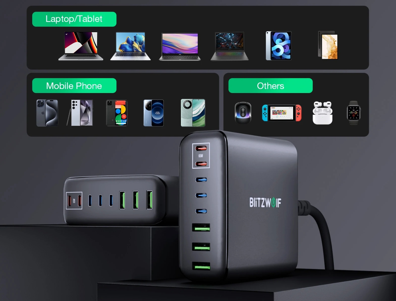 A Blitzwolf BW-S26 nem egy átlagos USB-s töltő adapter, mert egyetlen helyett nyolc eszközt is képes tölteni, így megszabadít egy halom töltőtől.