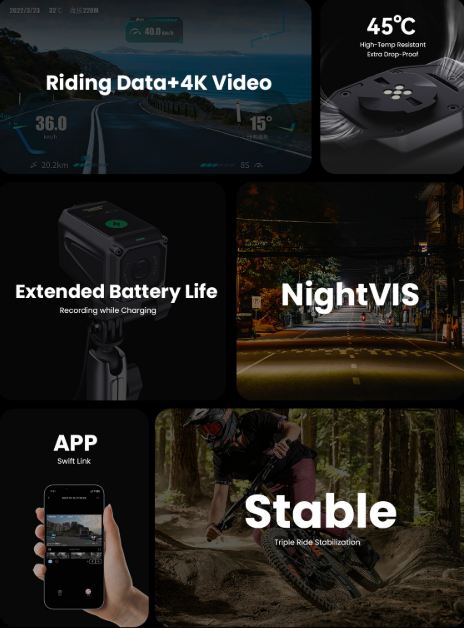 A kamera automatikus indítási módjával nem kell mással foglalkoznod, csak felülsz a kerékpárra, vagy motorra, és a beépített giroszkóp érzékeli a mozgást, automatikusan elindítja a rögzítést. Közben pedig gyűjti az adatokat – sebességet, megtett távolságot, emelkedést, még a dőlésszöget is méri. Ezeket az információkat később letöltheted a számítógépedre, és pontosan visszakövetheted, hol jártál.