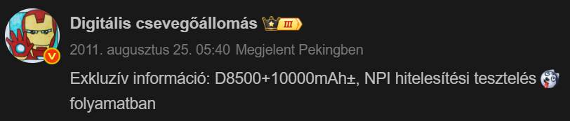Eszerint a Honor új Dimensity 8500-as telefonját egy 10 000 mAh-s aksival tesztelik. A telefon már az NPI (New Product Introduction, új termék bevezetés) ellenőrzési fázisban van. A végleges neve egyelőre nem ismert.
