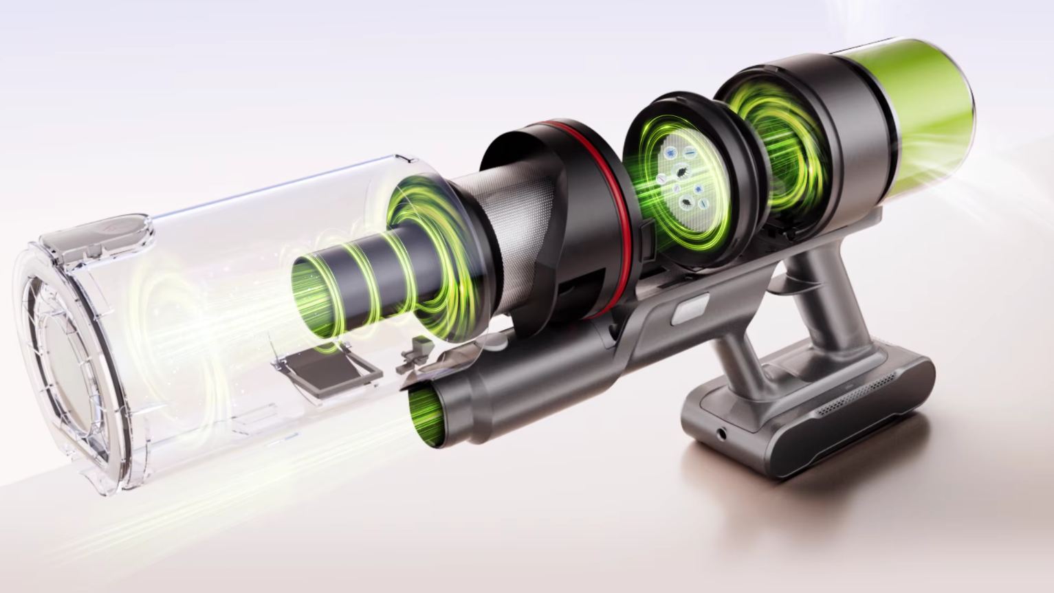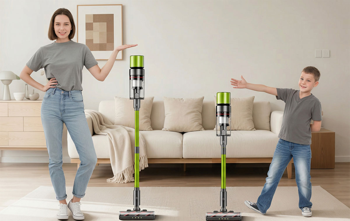 Eléggé tipikus vezetéknélküli, álló porszívó, de kicsit vidámabb színekkel és pár extrával.