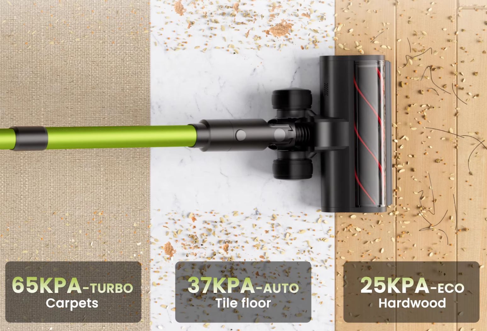 Automatikus módban képes megnövelni a szívóerőt, ahol szükséges.