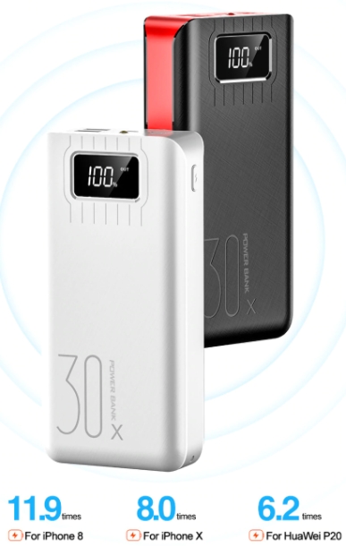 A CASEIER ezen power bank-ja kellemesen nagy, 30 000mAh kapacitással felszerelt, ráadásul egy digitális kijelzője is van, amelyen mutatja a hátralévő töltöttségi szintet. Az ára több mint szerény, jelenleg 6 400Ft körül alakul.
