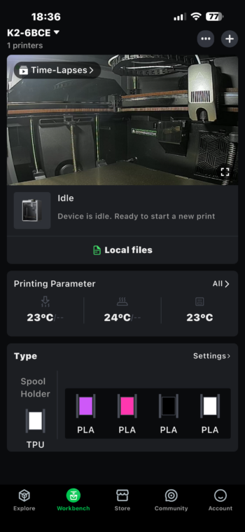 Szerencsére a nyomtató tényleg mindent intéz helyetted, firmware frissítést is, sőt, ha NFC-vel ellátott Creality filamentet vásárolsz, azt automatikusan felismeri a CFS, és nem is kell vele vacakolni, hogy milyen anyag és szín.