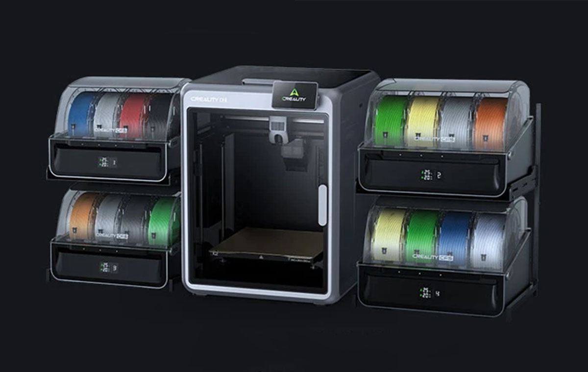 4 tekercs filamentet tehetsz bele, viszont TPU-t nem lehet.