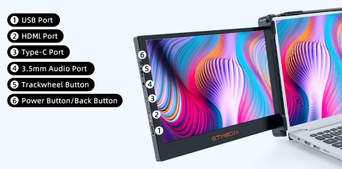 A két monitor 11.6″ méretű (IPS, HDR) és felbontásuk Full HD. A használatukhoz egy full featured Type-C bemenet kell a laptopon.