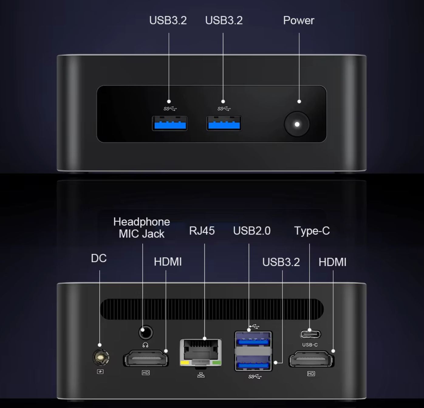 Intel Core i7-12700H mini PC bemenetek