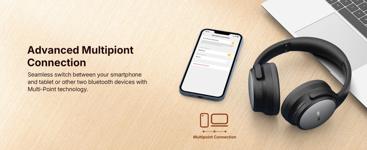 Az EarFun Tune Pro bluetooth fejhallgató egy szokatlan konstrukció, mert összesen négy hangszóró került bele, vagyis mindkét oldalon kettő van és ez a gyártó szerint extrém hang minőséget ad.