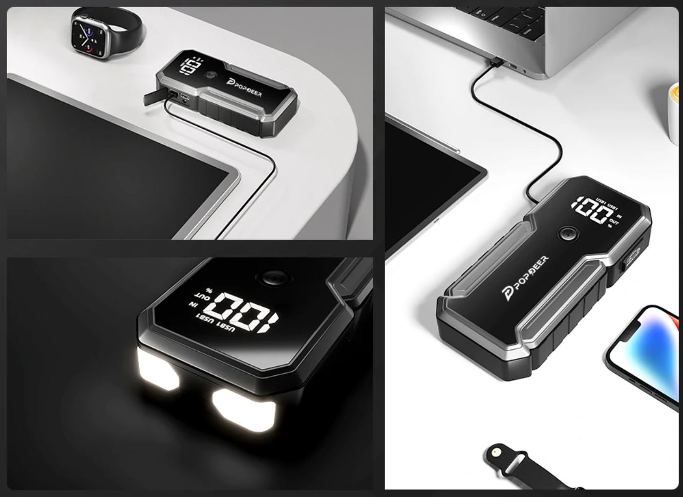 Ilyen helyzetekre nyújt egyszerű megoldást a POPDEER PD-J02 hordozható indító, amely nemcsak az autó beindítását segíti, hanem más eszközök töltésére is használható.