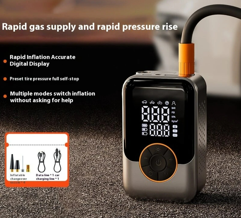 Ez a légpumpa nem csak autógumikhoz ideális, hanem univerzális társ a mindennapokban. Könnyedén beállíthatod a kívánt nyomást, amit a digitális kijelző pontosan mutat.