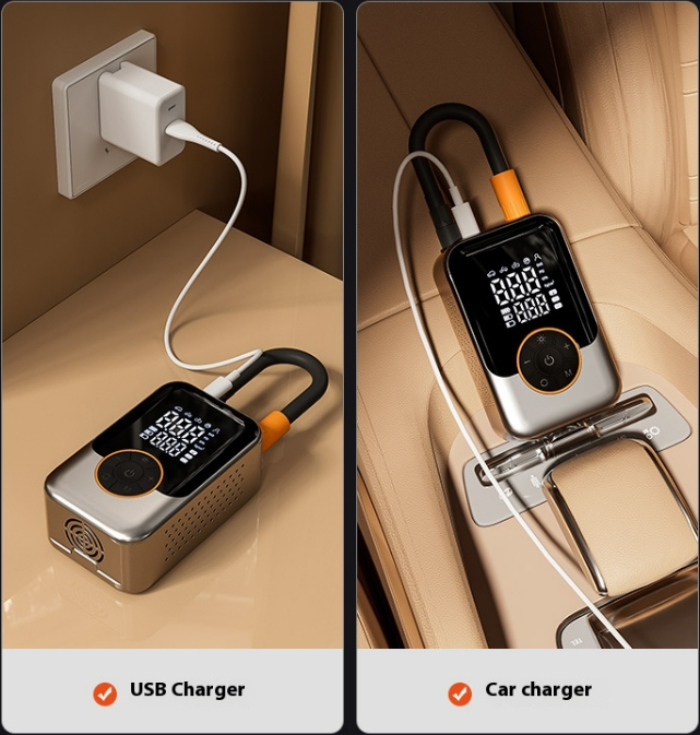 A pumpa beépített akkumulátorral rendelkezik, amelyet USB-n keresztül tölthetsz fel. Egyetlen töltéssel több abroncsot is könnyedén felfújhatsz, így nem kell aggódnod, hogy útközben cserben hagy.
