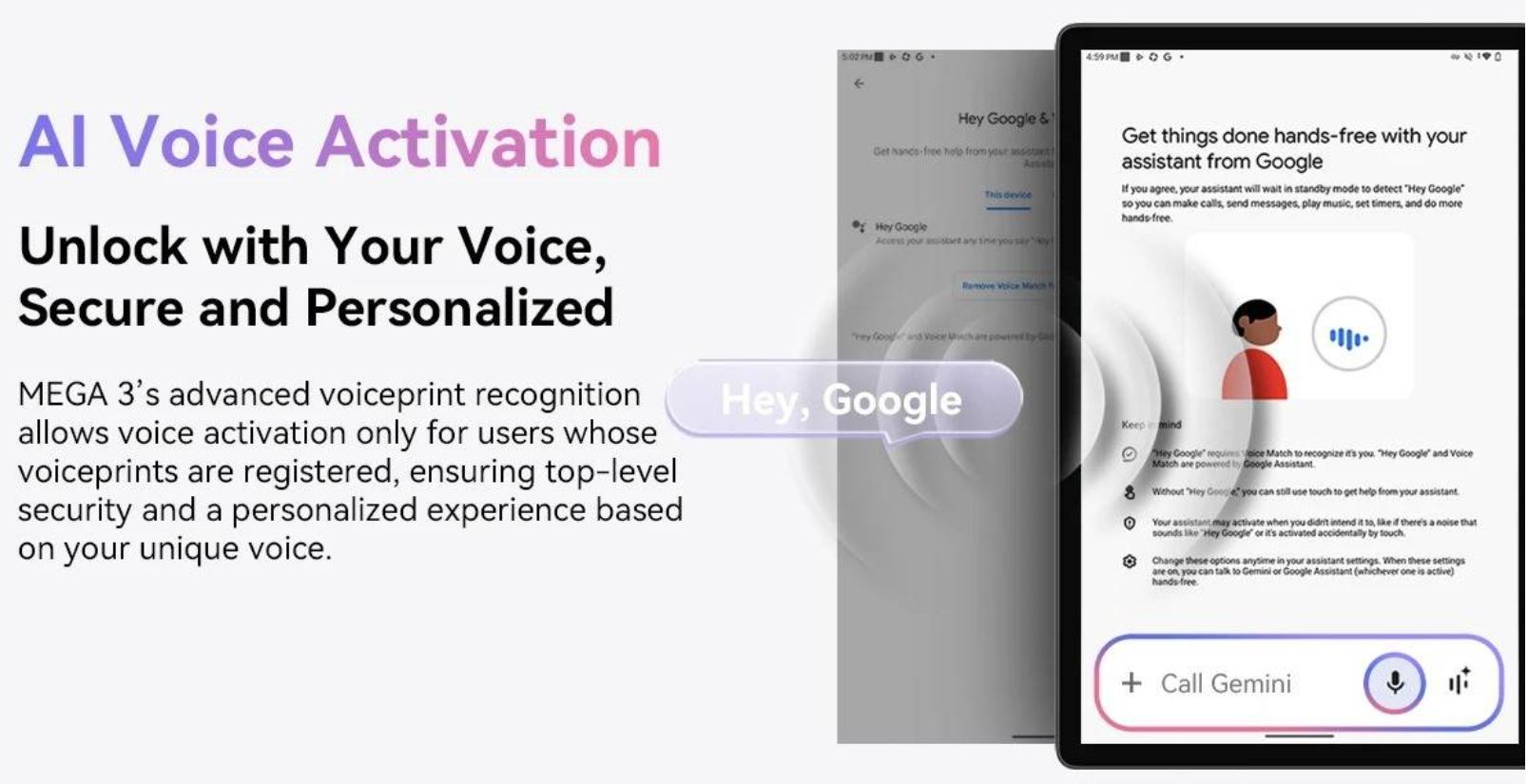 A rendszer egyik fő újítása a teljes hangvezérlés. A felhasználó hangját felismeri és azonosítja, így csak neki válaszol. Ezen keresztül bármilyen alkalmazás vezérelhető, ráadásul nem kell hozzá érinteni a készüléket – elég beszélni. A valós idejű, folyamatos beszélgetések is működnek, vagyis az AI nem csak egyszerű kérdésekre válaszol, hanem képes párbeszédet folytatni.