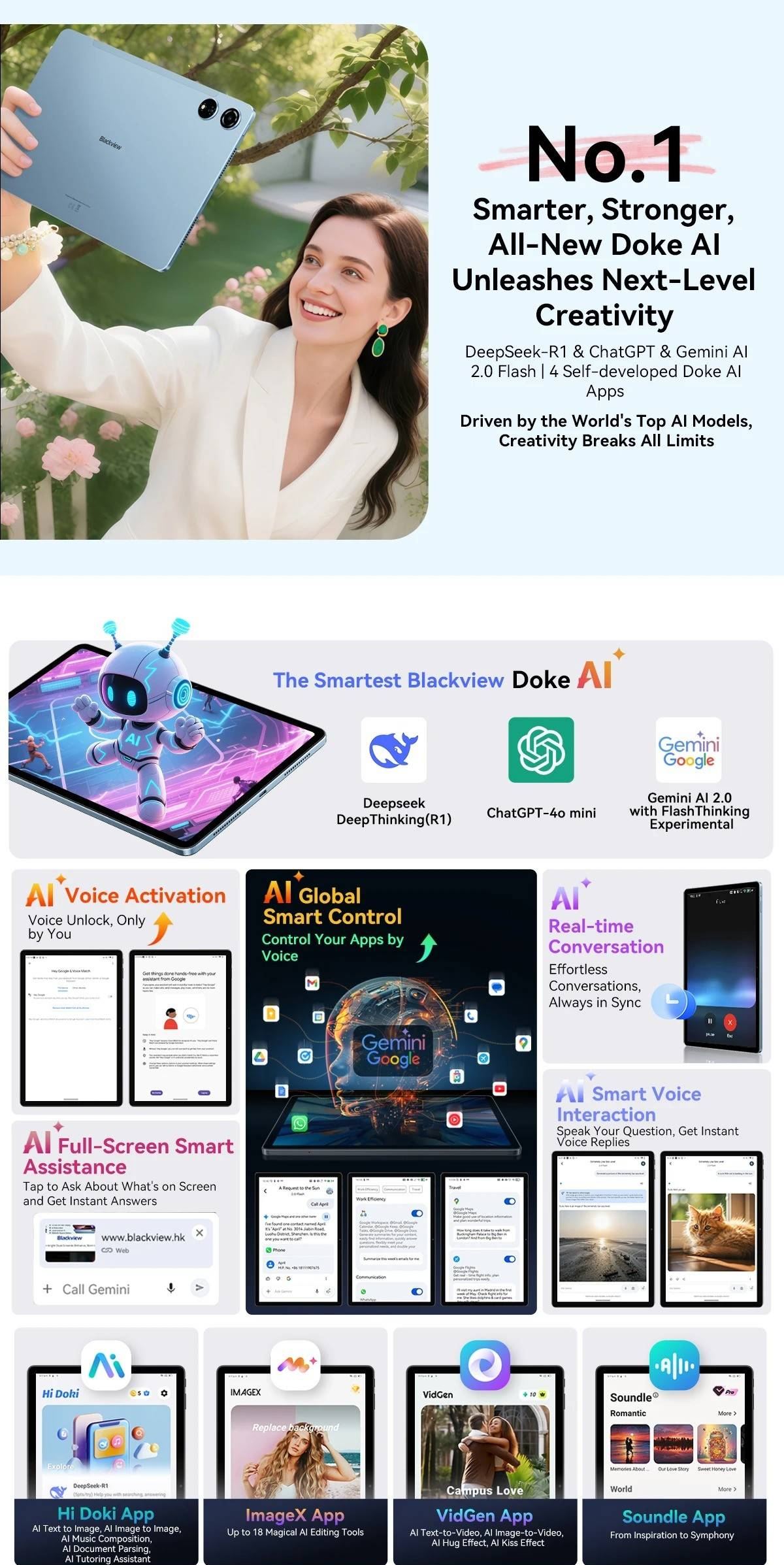 Az AI rendszer három nagy AI-motort használ: a DeepSeek R1-et, a ChatGPT-4o mini változatát, és a Gemini AI 2.0 Flash-t. Ezek az alapok adják az egész platform intelligenciáját – legyen szó beszédfelismerésről, képszerkesztésről vagy videófeldolgozásról.
