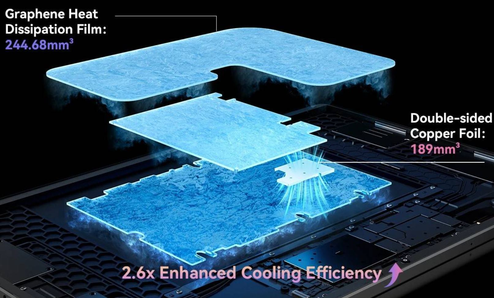A nyolc magos MediaTek G100 és 12GB RAM került bele, valamint 256GB, amely memóriakártyával tovább bővíthető (akár 2TB), szóval tárhelyben nem lehet hiány.