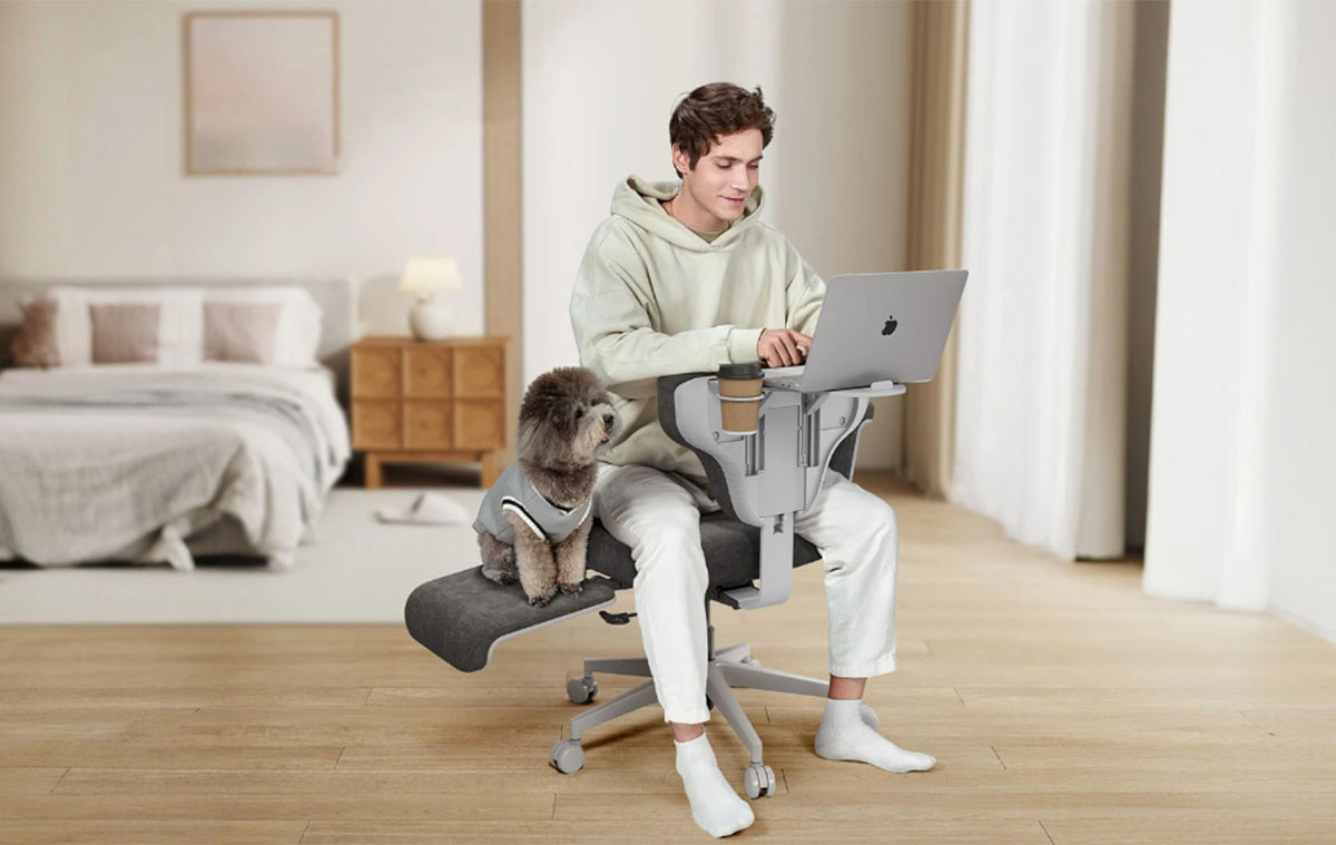 Ez a szék mindentől különbözik, amit megszokhattunk és teljesen más a kialakítása is, mert van helye egy laptopnak, egy pohártartónak és persze nekünk.