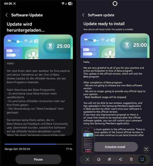 2024 december óta a Samsung három európai országban – Németországban, Lengyelországban és az Egyesült Királyságban – vezette a One UI 7 béta programot. A programban részt vevő Galaxy S24 készülékek tulajdonosai most megkapják a stabil One UI 7.0 frissítést Európában.
