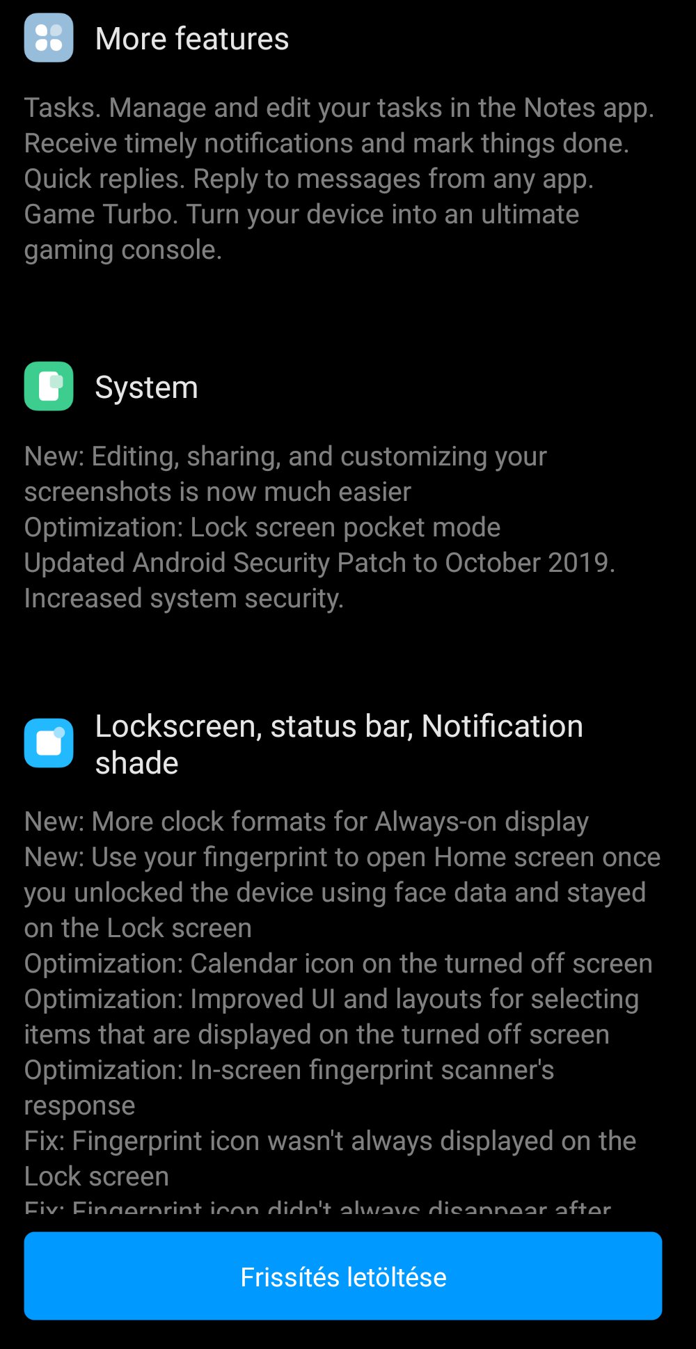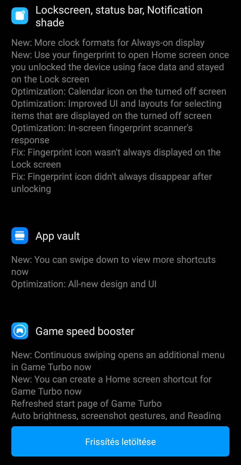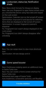 A frissítés további részletei