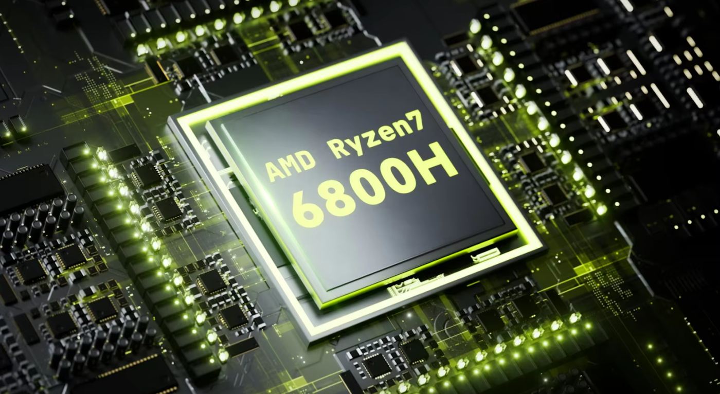Az AMD Rzyen 7 6800H processzort kapta meg, amely egy 8 magos és 16 szálas fenevad, ami a Zen 3+ architektúrára épül. Nagyon hatékony, így nem forrósodik fel úgy egy apró házban, mint az asztali társai. 3.2 GHz-es alapórajele van, de ha kell, felugrik 4.7 GHz-ig.