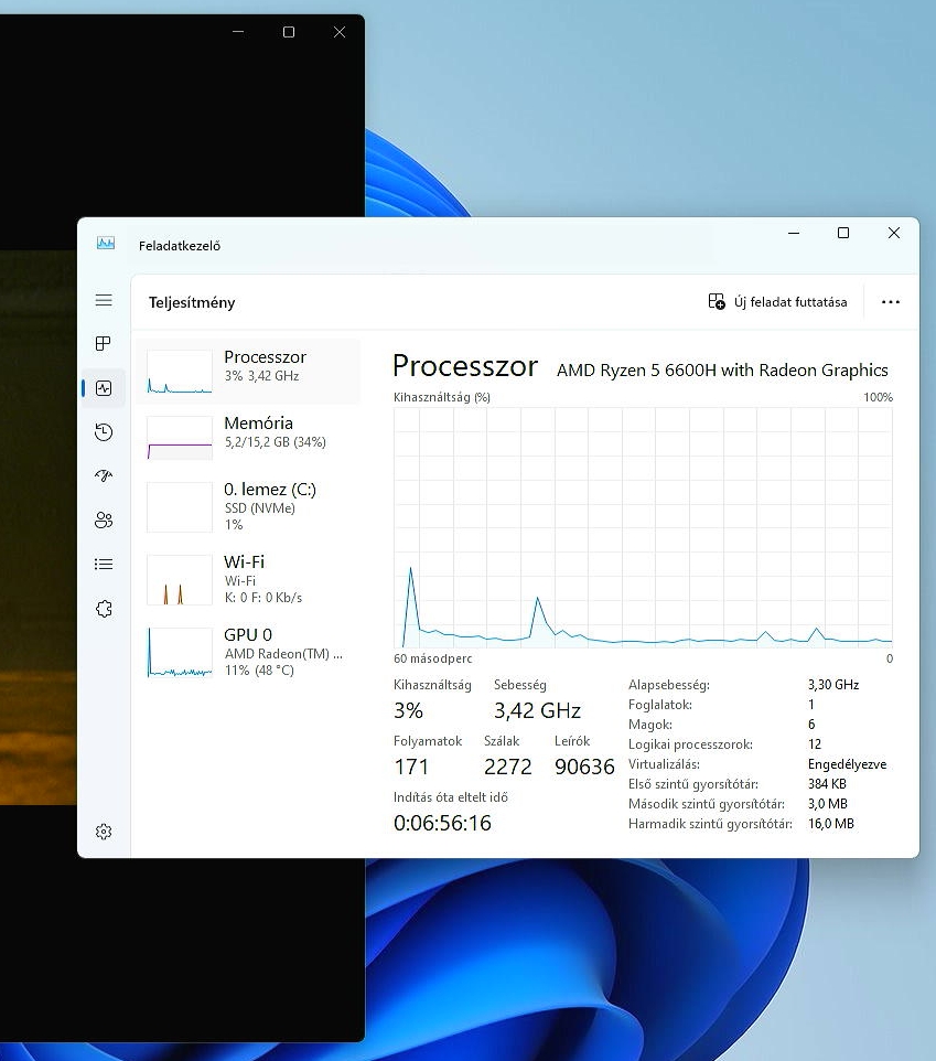 A Ryzen 5 6600H támogatja a DDR5 memóriát, ami gyorsabb adatátvitelt tesz lehetővé a korábbi generációkhoz képest, hozzájárulva a rendszer általános teljesítményéhez. TDP (Thermal Design Power) értéke jellemzően 45W körül van, ami azért mutatja a teljesítményét.