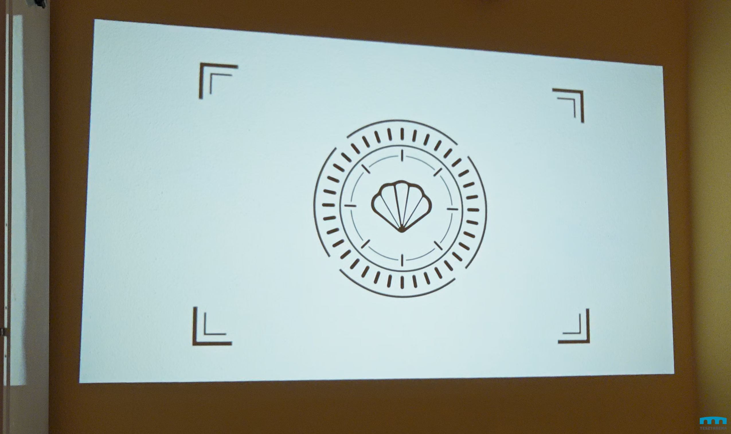 A 300 ANSI lumen besötétített szobában éles és kontrasztos képet ad, és a projektor elején az optika fölött van beépített kamera is, amivel automatikusan be tudja állítani a fókuszt. Ez tökéletesen működik is: bármilyen mozgatásnál amikor egy kicsit is megáll a mozgás, automatikusan újra beállítja a fókuszt. Objektumokat nem tud „kikerülni”, mint fejlettebb társai, ha a fal / vetítővászon előtt van valami, arra is rávetít.