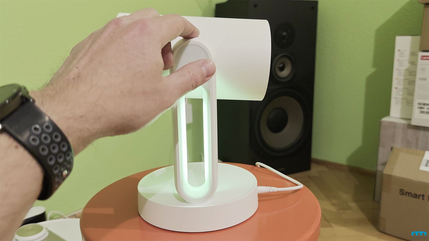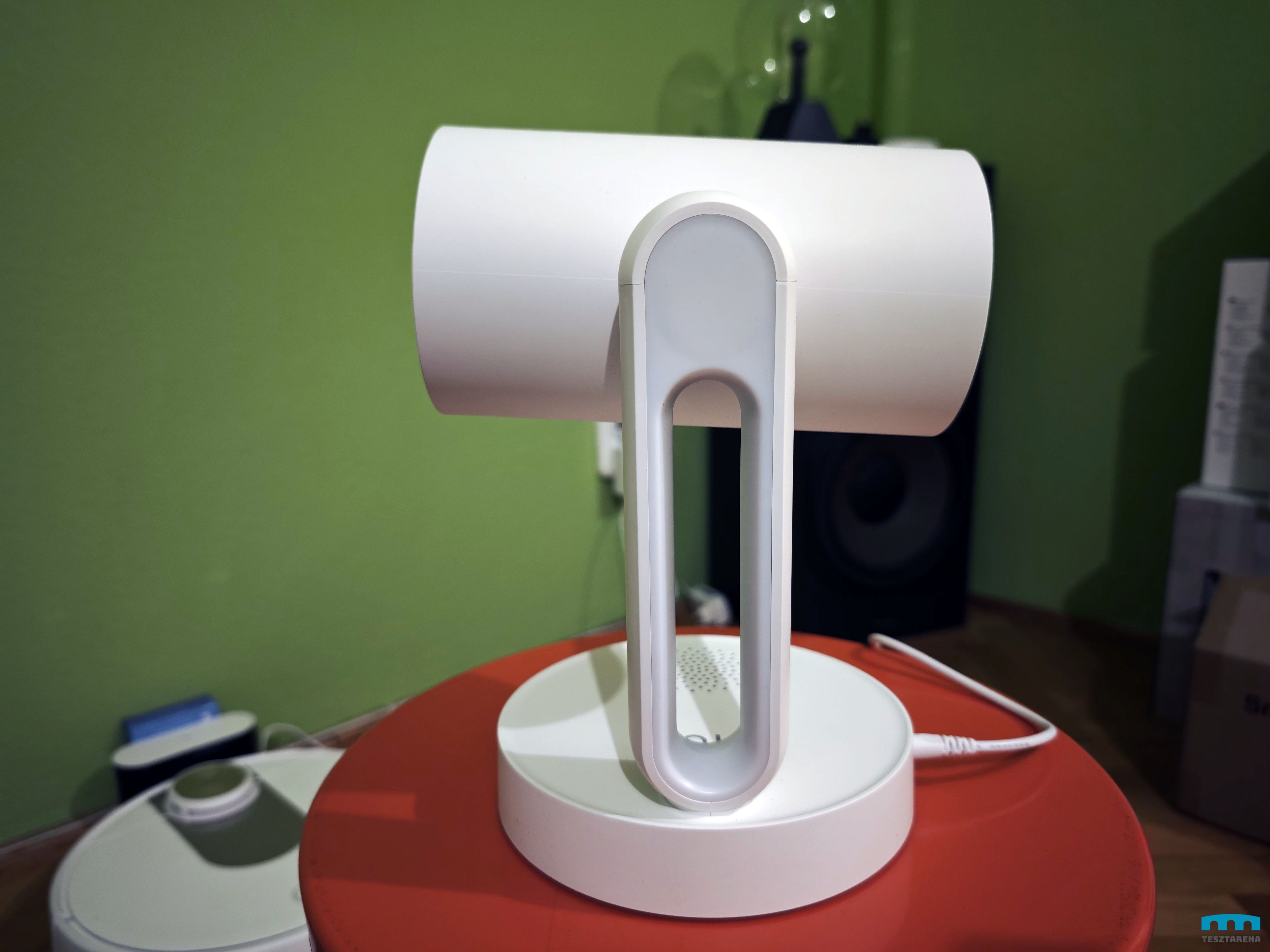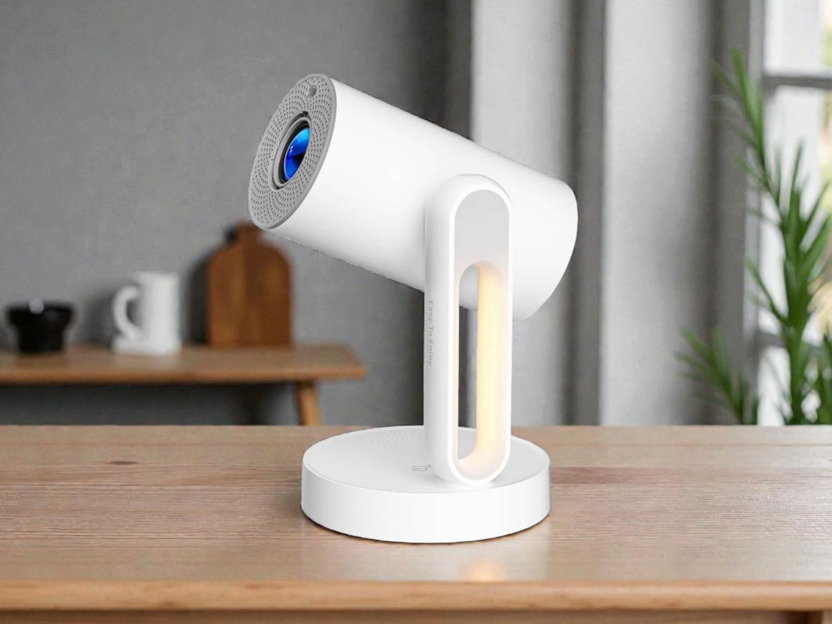 Nem a szokásos téglatest: egy hengeres projektorról van szó, ami egybe van építve az éjszakai fényként is funkcionáló állványával (és amúgy igen kompakt).