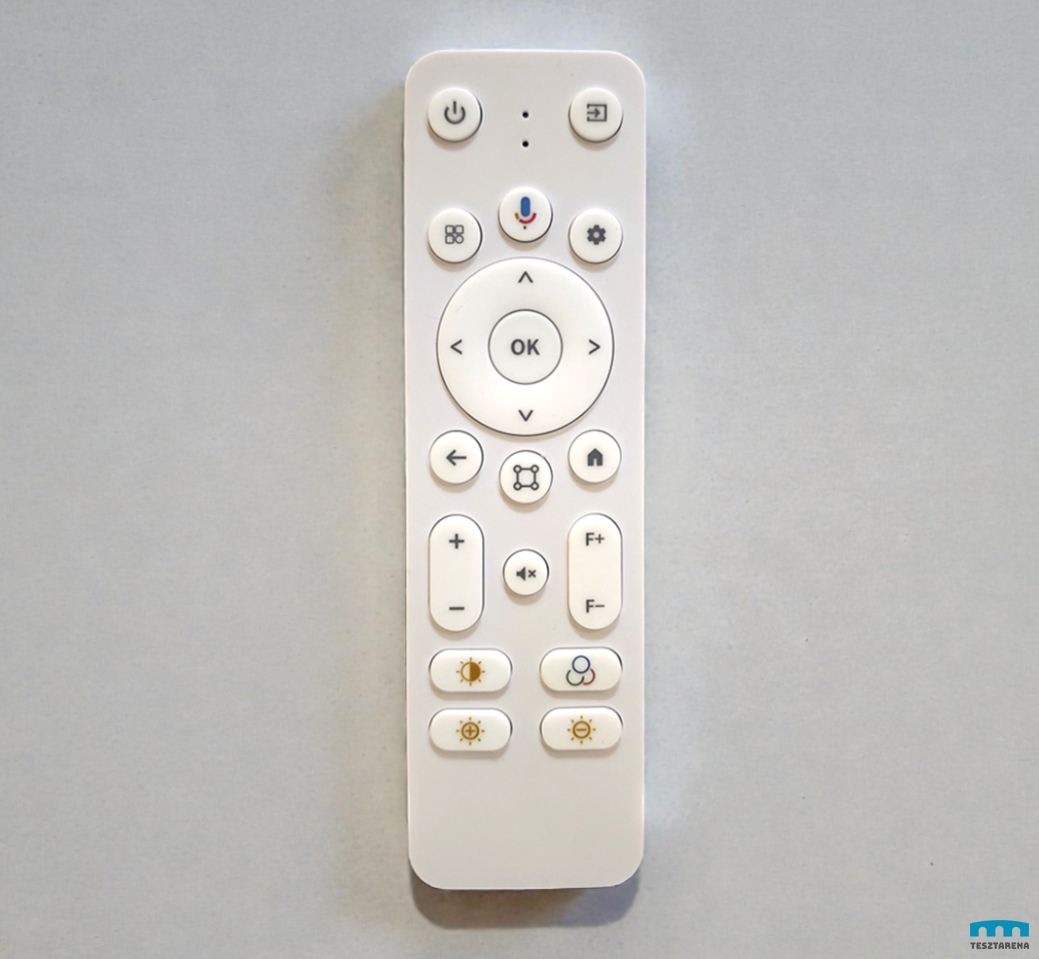 A távirányító egy kellemesebb darab, kényelmes, és érződik rajta, hogy van benne anyag. 2 db AAA-s elemről, (vagy inkább akkumulátorról 🙂) működik.