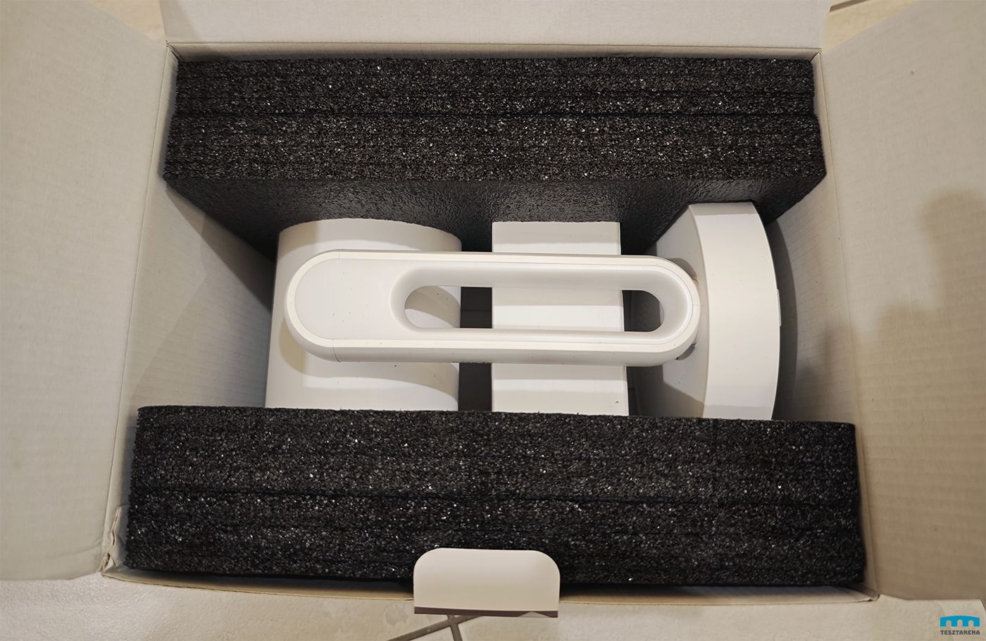 Duplán be volt csomagolva, egy külső kartondoboz is védte a csomagot, de amúgy sem lett volna semmi esélye szállítás közben megsérülni, tökéletes volt az elrendezés, alul-felül (illetve balról és jobbról, lévén úgy van benne a dobozban) is vastag és merev habszivacs óvta az út viszontagságaitól.