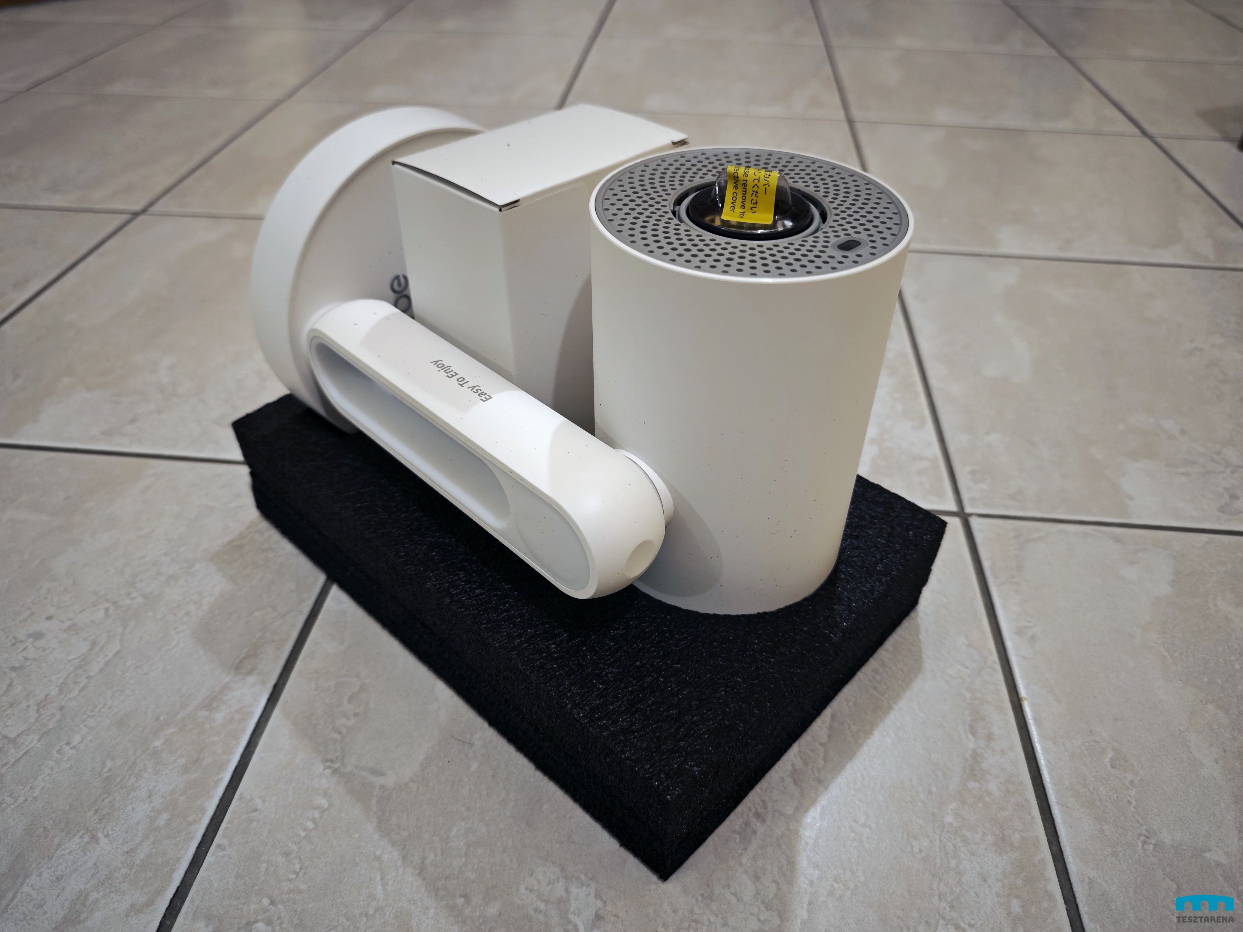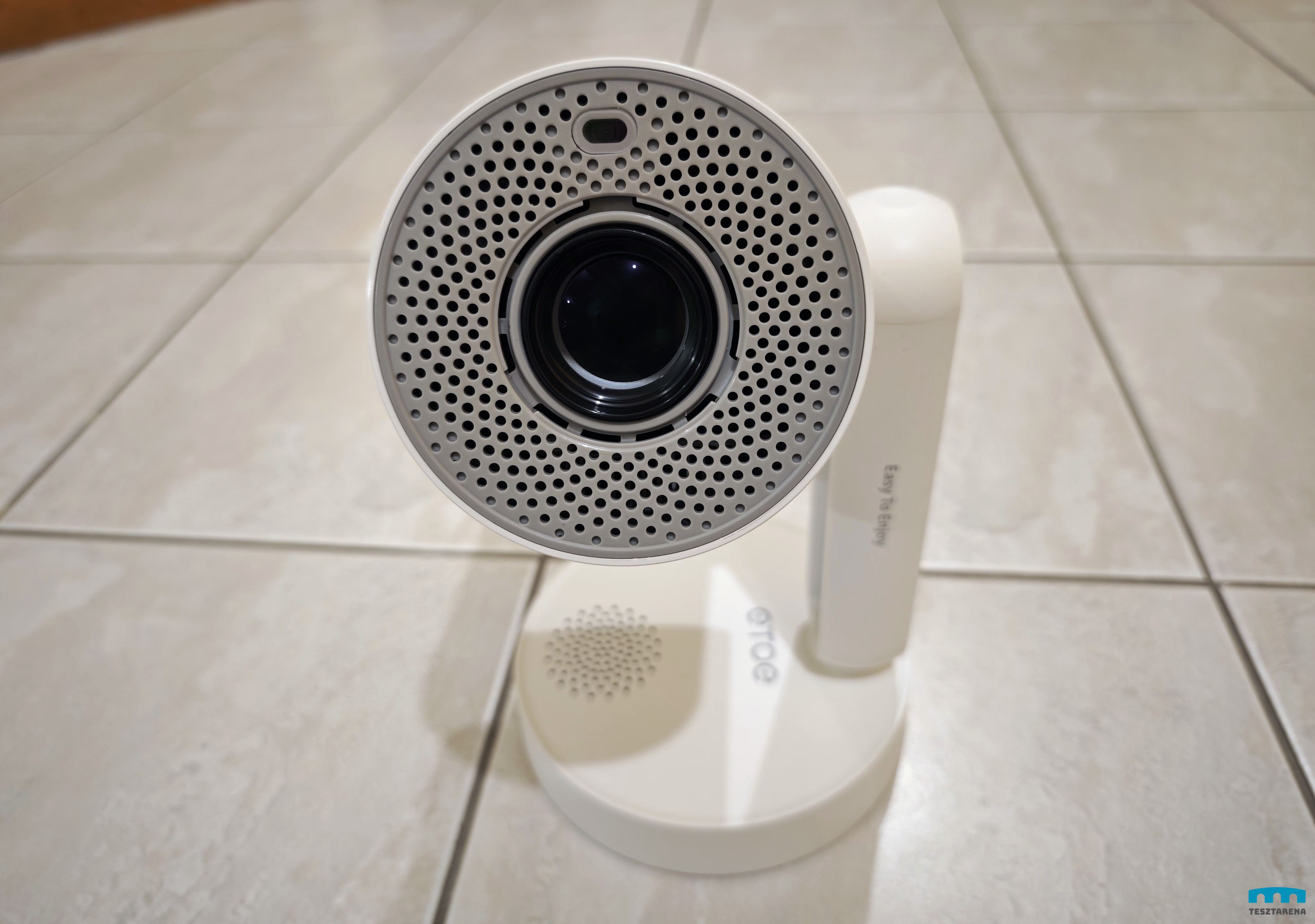 A projektor lencséjét egy műanyag kupak védte szállítás közben, de ezen érződött, hogy az egyetlen funkciója, hogy ne karcolódjon meg az optika, a mindennapok során nehézkes lenne mindig visszarakni és leszedni.