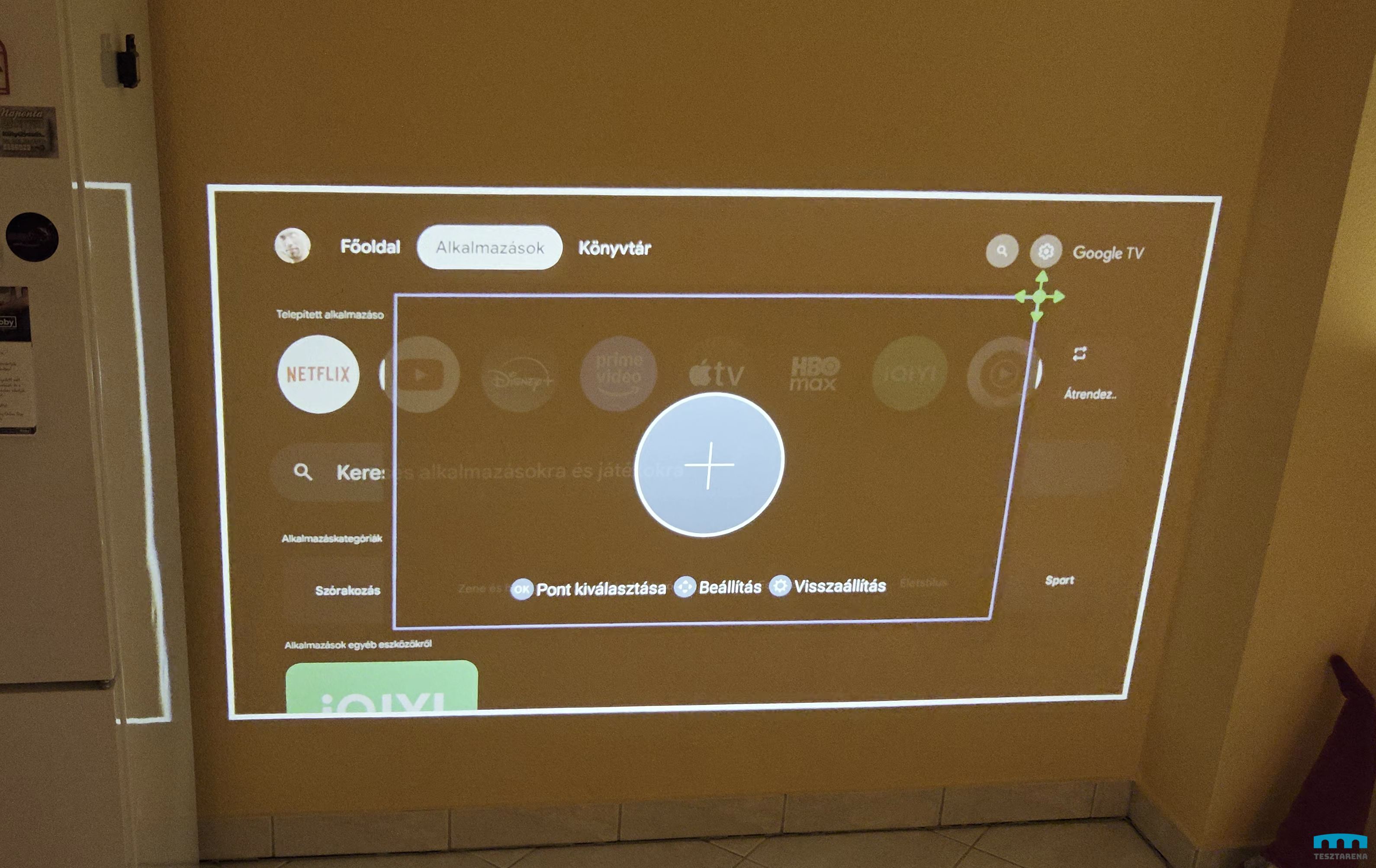 Amit elvileg tud, de a gyakorlatban nem, az az automatikus trapézkorrekció, mert ha kicsit ferdén áll a projektor, a kép úgy marad, meg sem próbálja a sarkait beállítani, viszont tudja a manuális korrekciót, és tapasztalataim szerint szépen be lehet vele állítani, hogy ne legyen ferde a kép.