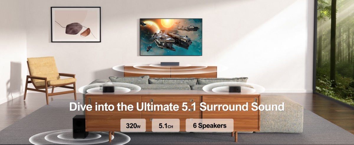Erőteljes, de kompaktabb hangrendszer és így nem csak nagyobb, de kisebb szobákban is meg van a helye a soundbarnak, a mélynyomónak és a két kisebb hangszórónak, amelyek hátul vannak és vezeték nélkül kapcsolódnak a soundbarhoz.