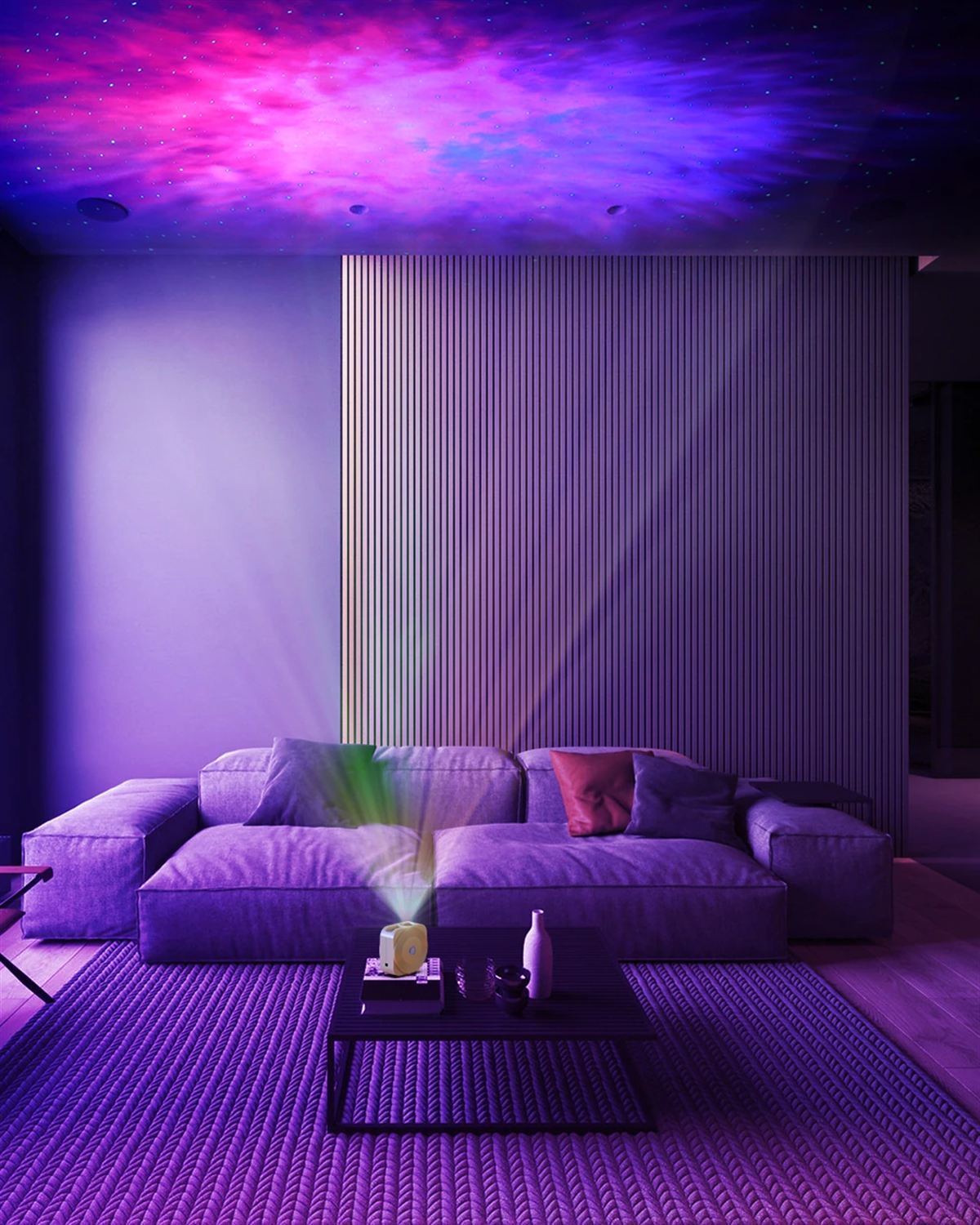 A BlitzWill BW PLT1 egy olyan hangulatfény, amit nem igazán lehet egyszerű lámpának nevezni, inkább egy vizuális élmény. Bekapcsolás után a mennyezeten és a falakon egyszerre jelennek meg mozgó csillagminták és színes ködszerű fények, mintha egy mini planetárium költözött volna a szobába.
