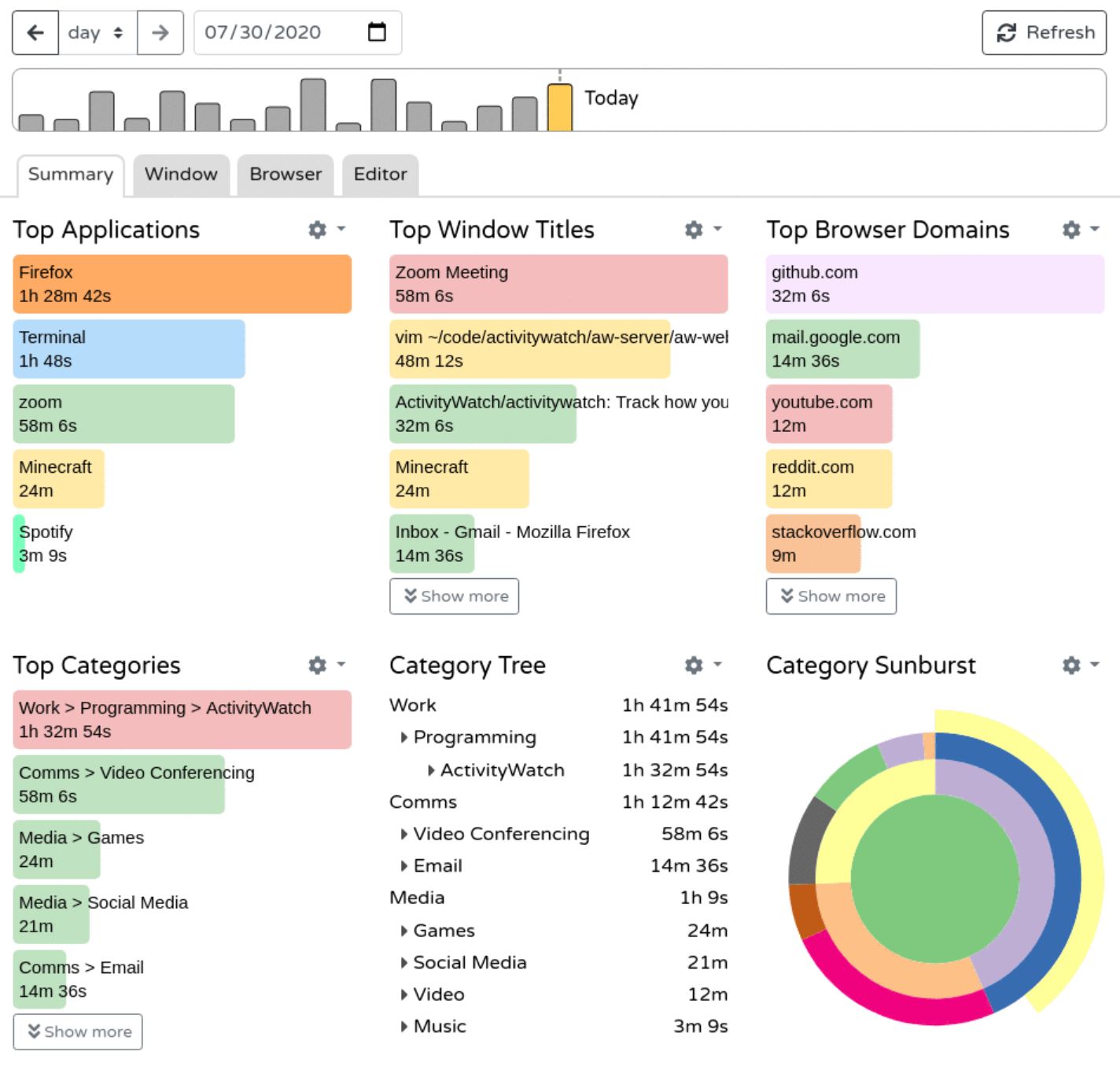 Telepítés után egyszerűen fut a háttérben, és közben rögzíti, melyik program van megnyitva, mennyi ideig marad fókuszban, illetve böngészővel használva azt is, hogy mely oldalakon mennyi idő telik el (helló Youtube, Facebook és a többi időrabló).