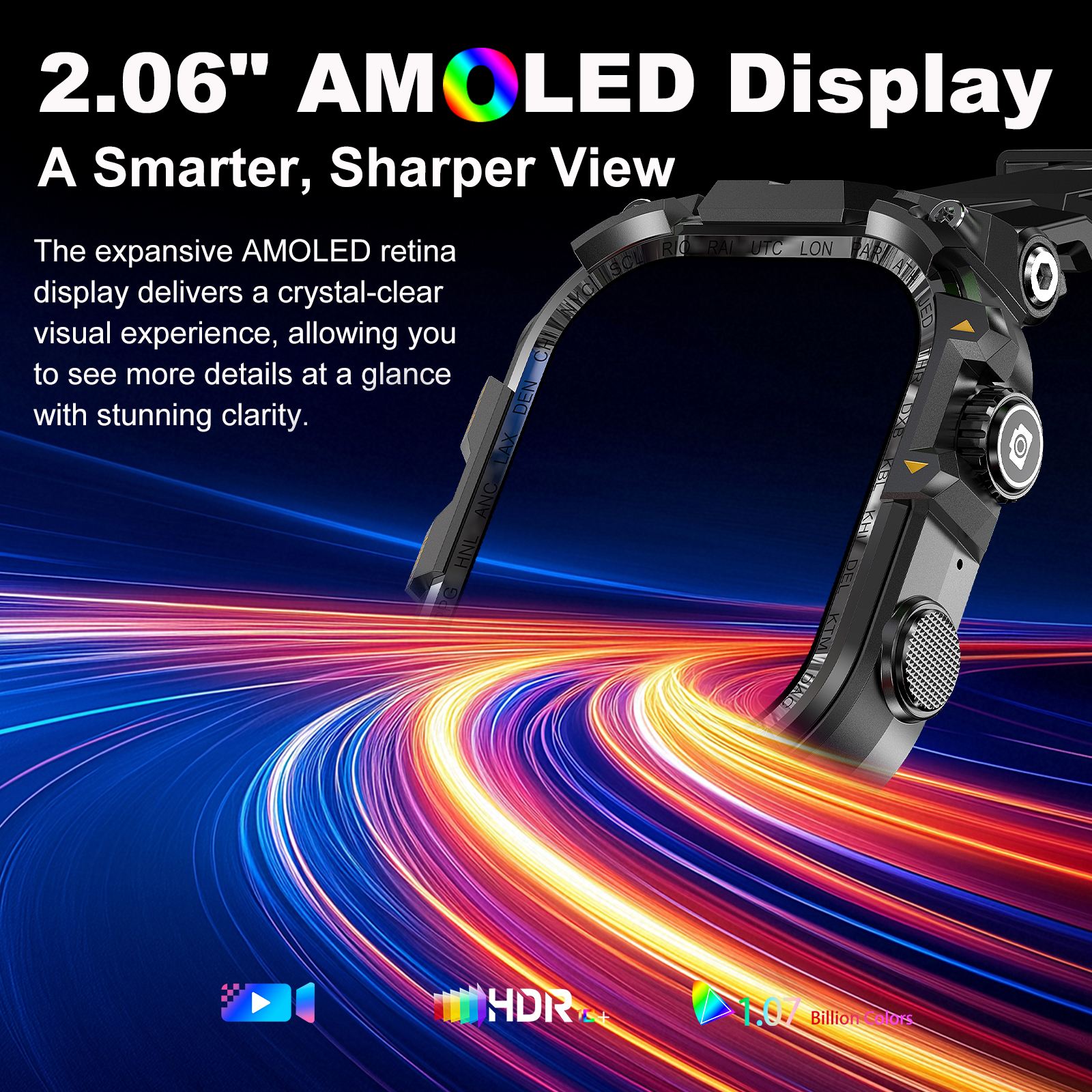 A 2.06 hüvelykes AMOLED kijelző nem csak méretében impozáns, hanem kültéren is jobban leolvasható a nagy méretének köszönhetően.