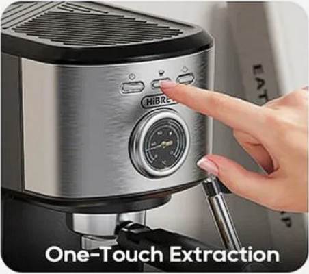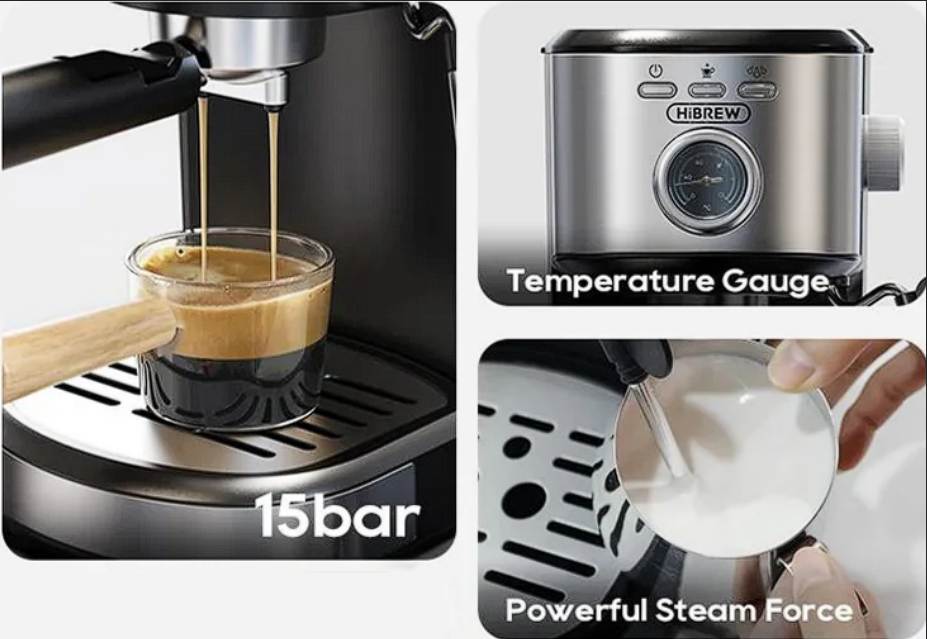 A HiBREW H5A15 egy otthoni mini presszógép, ami már kávézóhangulatot hoz. 15 bar nyomás, hőmérő, tejhabosítás, gőzölés, csészemelegítés – pont az a szint, ahol reggeli rutinból kávés rituálé lesz.